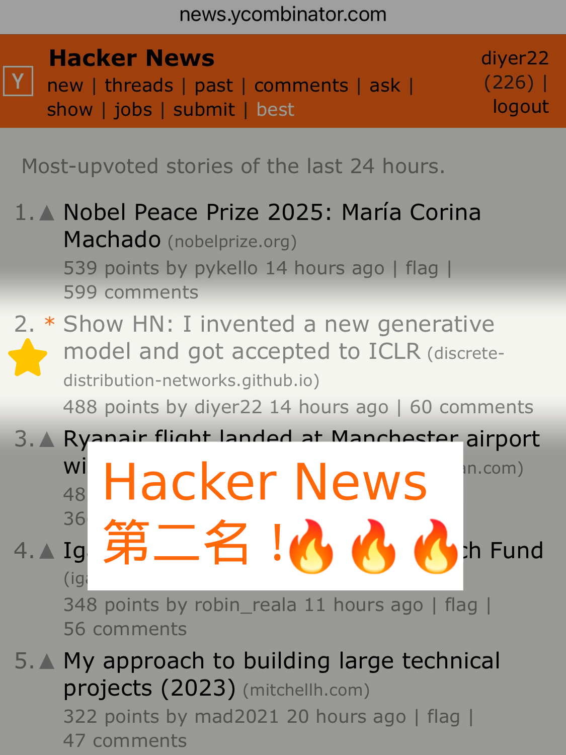 我发明的算法,登上了 Hacker News 日榜第二!