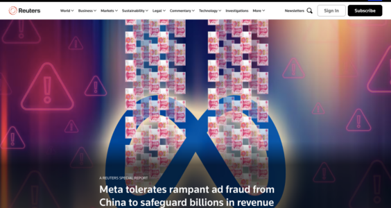 【CDT报告汇】路透社调查:Meta纵容中国诈骗广告,内部反欺诈团队被叫停以维护数十亿美元收入(外二篇)