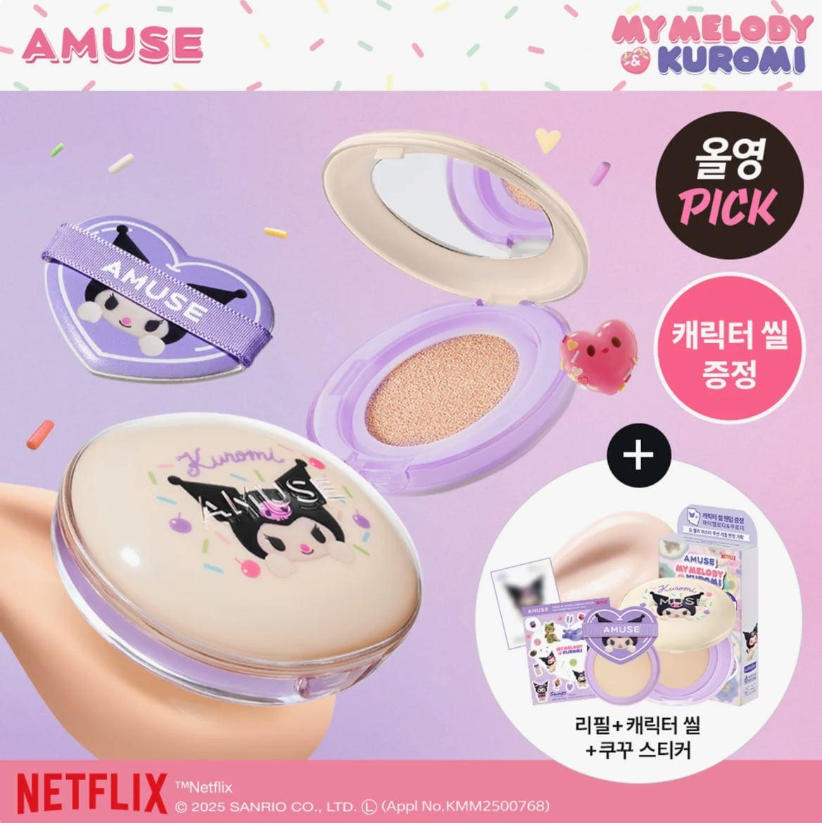An example of a Korean foundation cushion. Idols and cartoon characters are prominently featured in cosmetic advertising/packaging. Source.