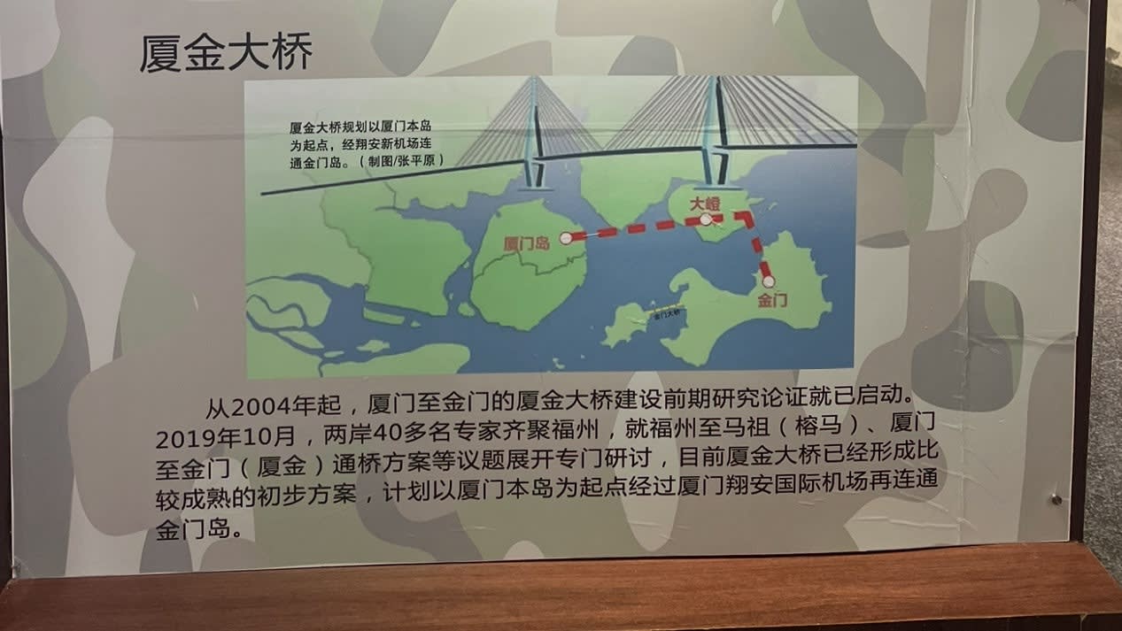 Plans for the Xiamen-Kinmen bridge, to be connected via the new airport at Dadeng island, as seen at a war tourism park in Xiamen. Plans for connection with Kinmen, or Kinmen’s use of the airport, have not been finalized. Photo courtesy of Ari Fahimi.