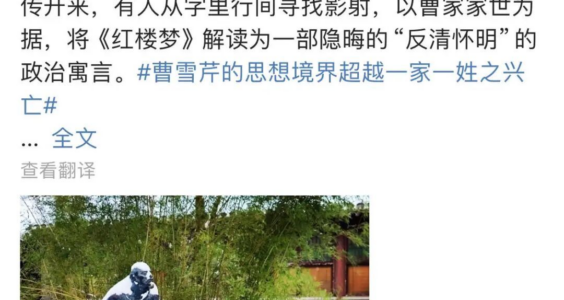 看上去,这股风潮由解读《红楼梦》而起,有网友认为《红楼梦》是反对清朝,怀念明朝之作,进而演化为,清朝的一切都应当被否定,明朝的所有都指向先进,如果不是清朝出现,国家会更加繁荣昌盛。