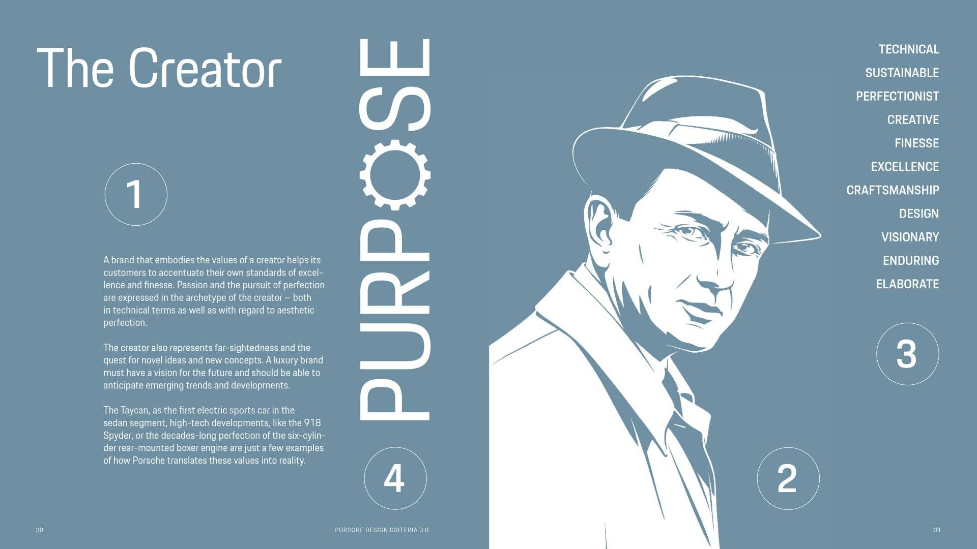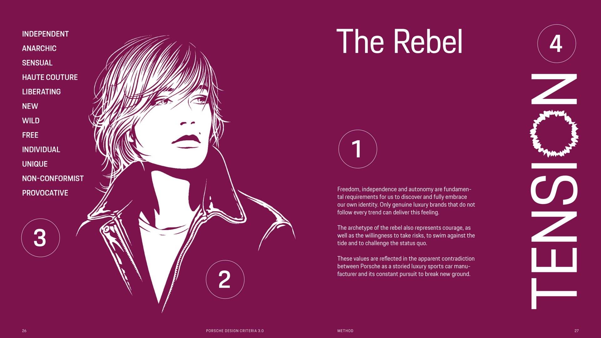 这三种原型象征着保时捷的设计身份。英雄体现了勇气、力量和毅力;「反叛者」体现了品牌在传统与创新之间的张力;「创造者」则代表着激情、技术精度与前瞻思维。