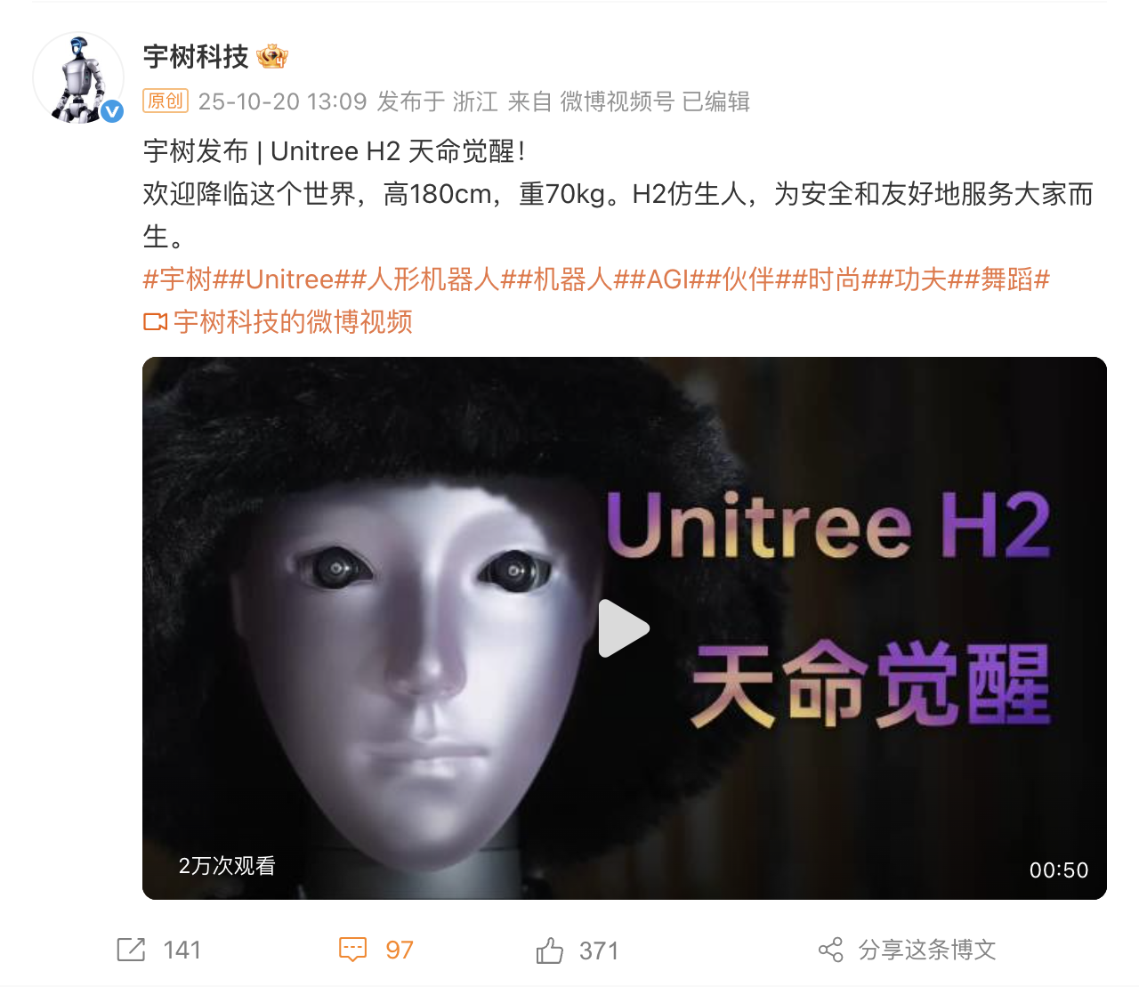 宇树科技发布「能跳芭蕾舞」的机器人 H2