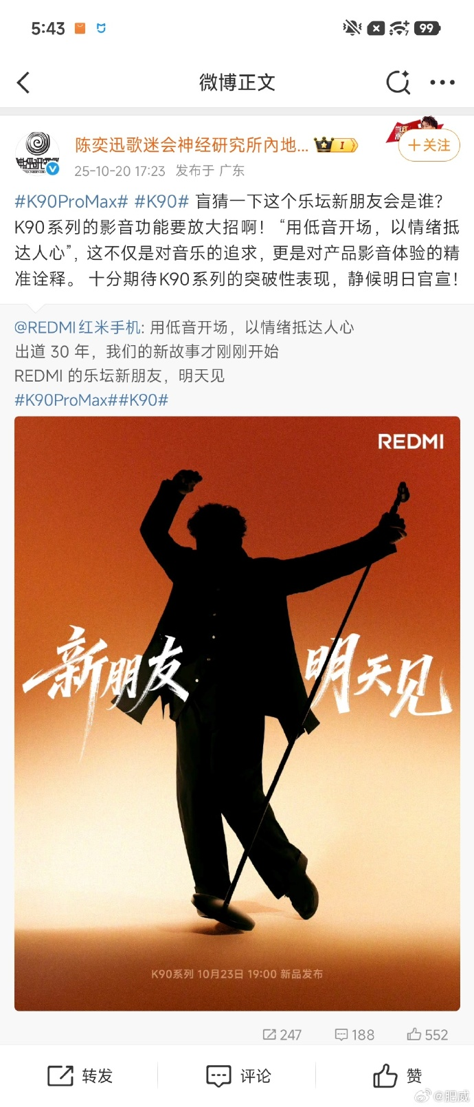 Redmi K90 Pro Max 代言人或为陈奕迅