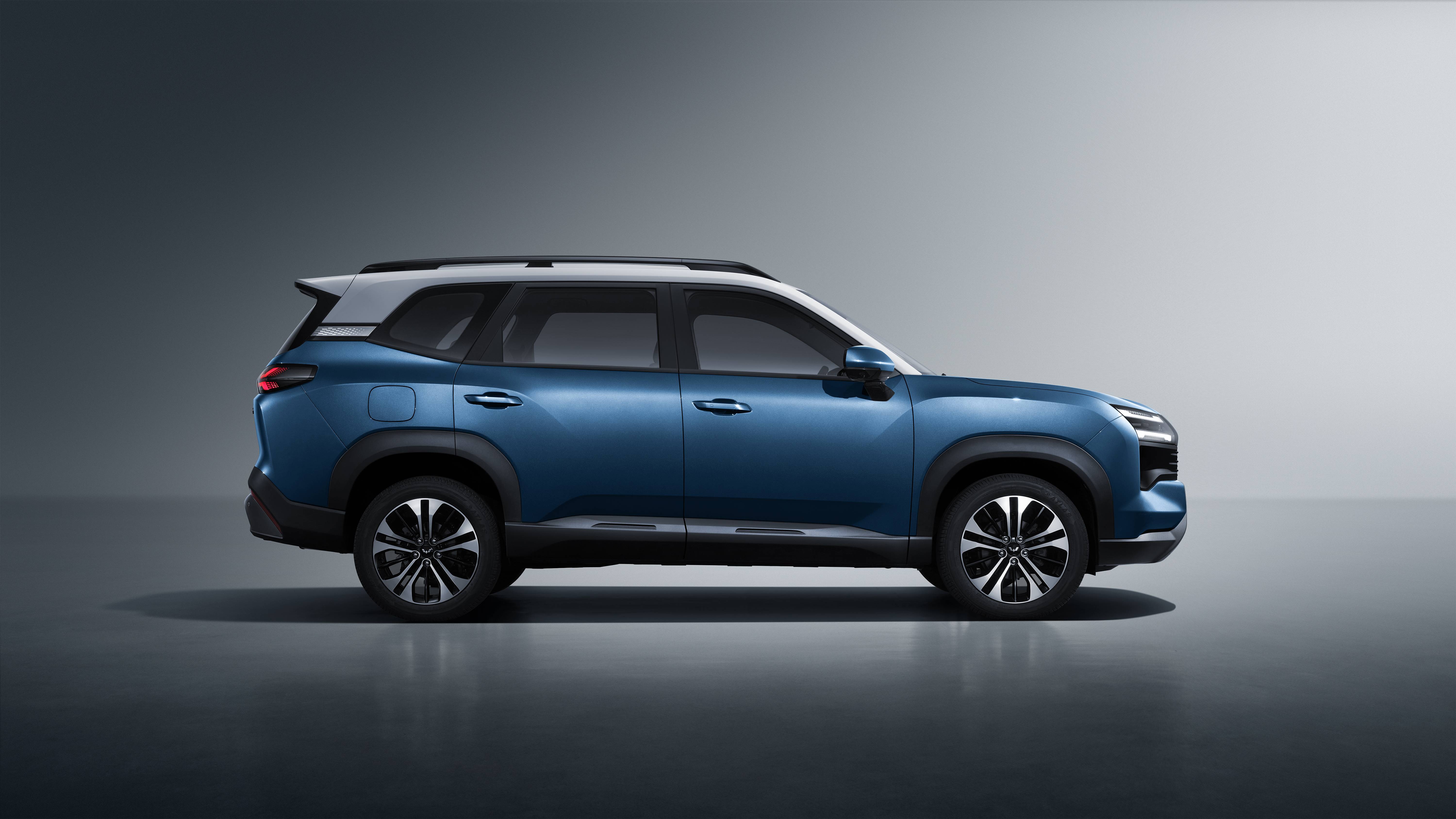 燃油版和插混版配备矩形黑色中网,内部为蜂窝结构,搭配双横幅式 LED 大灯;纯电版则使用封闭式前脸,下方设有矩形进气口。车身提供双色涂装选项,配合车顶扰流板、熏黑贯穿式尾灯以及大面积黑色后包围+金属护板,整体呈现出略带越野气质的都市 SUV 形象。