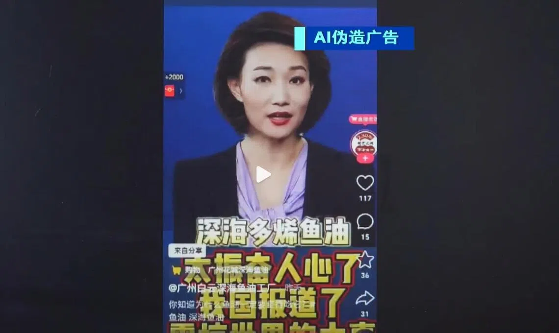 据中国央视财经报道,北京市场监管部门查处了首例利用AI技术进行虚假广告宣传的案件。今年2月份,北京市海淀区市场监管局接到消费者举报,反映北京某公司通过视频账号宣传所销售的“深海多烯鱼油”能够治疗多种疾病,涉嫌虚假宣传。