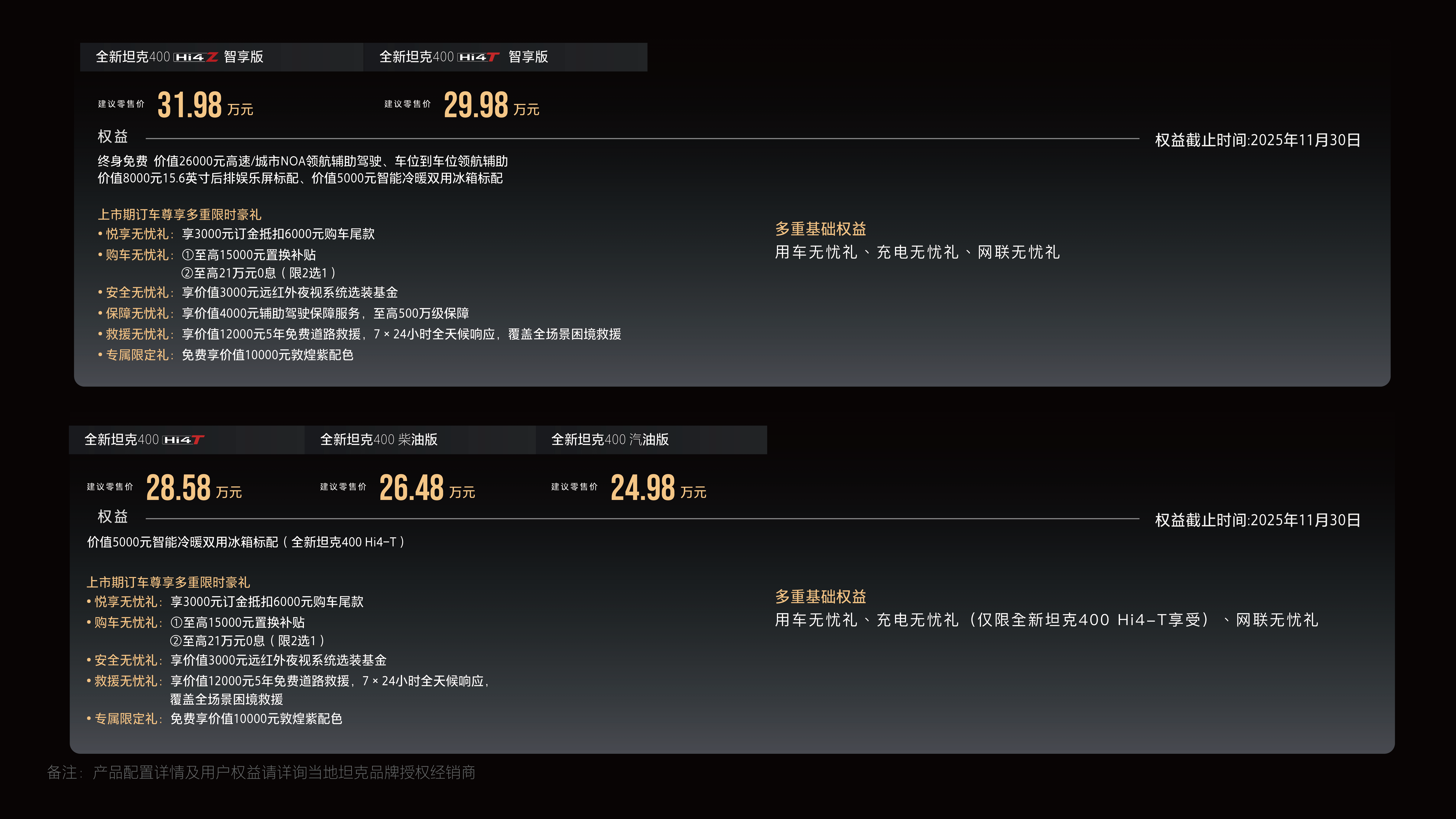 11 月 6 日,长城汽车正式推出了新款坦克 400。