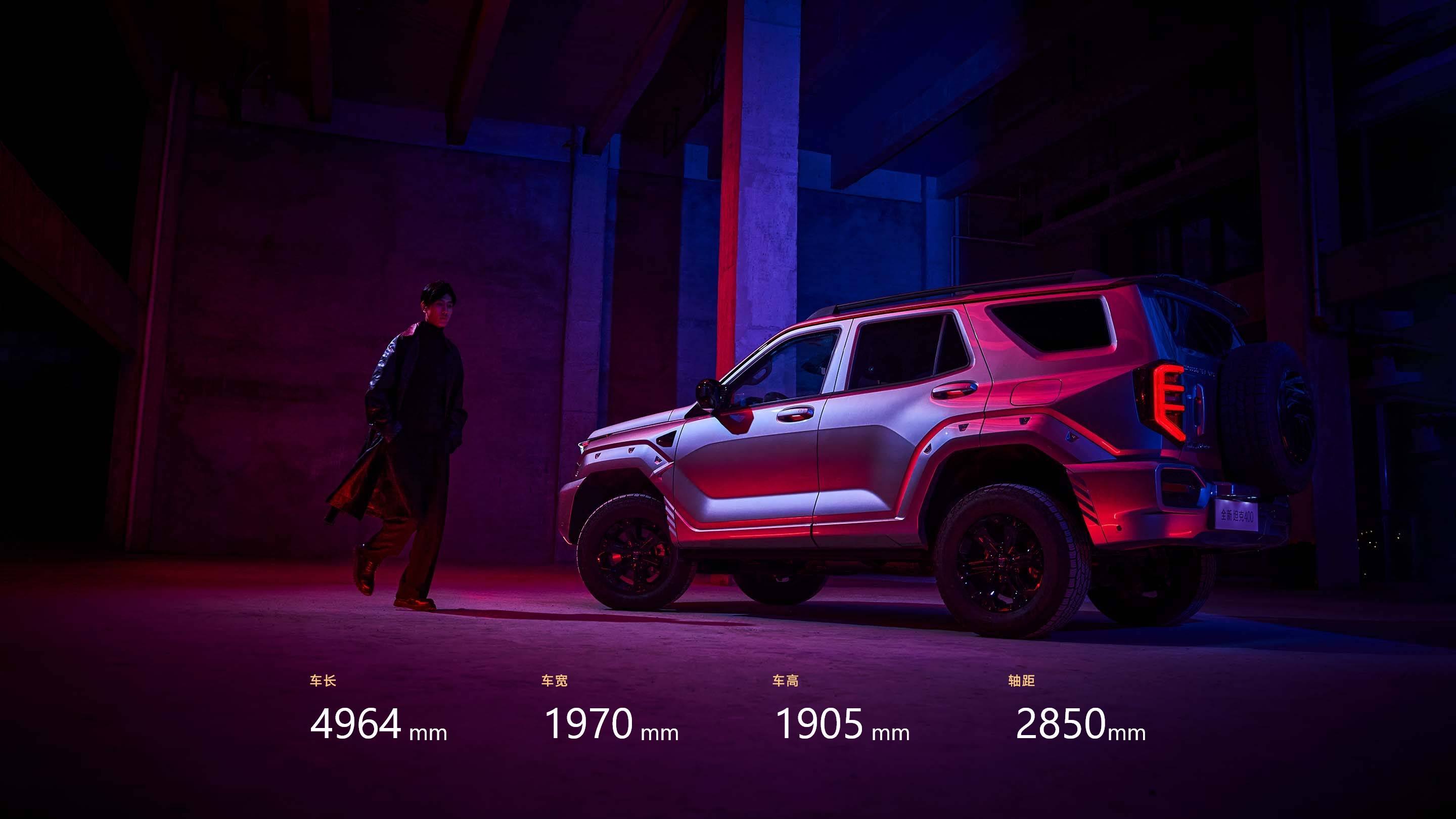 新车车身尺寸为 4964/1970/1905mm,轴距 2850mm,整体姿态方正硬朗,充满力量感。前脸格栅面积有所加大,下包围造型更显厚重;车顶新增一颗激光雷达,长城将其巧妙集成于扰流板内,未破坏原有的凌厉线条;尾部则采用名为「绯红光翼」的贯穿式尾灯,灵感源自猎户座星轨,内置 140 颗 LED 灯珠,并整合智能驾驶状态提示功能。
