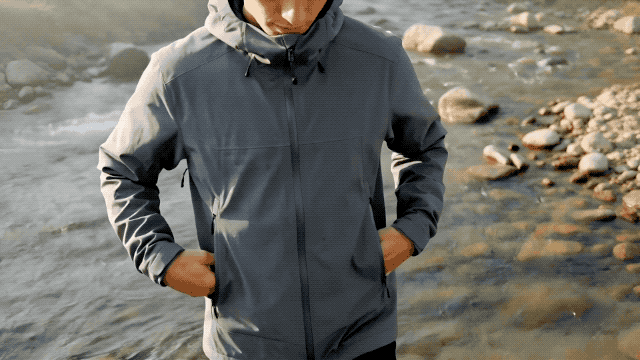 我们让它来做个冲锋衣的广告。我给它一张图片,让它生成一个具有溯溪、登山、野外徒步和城市遛狗多个场景切换的短片,以展示冲锋衣的日常穿搭场景以及防水、防风、防寒、时尚等功能特性。
