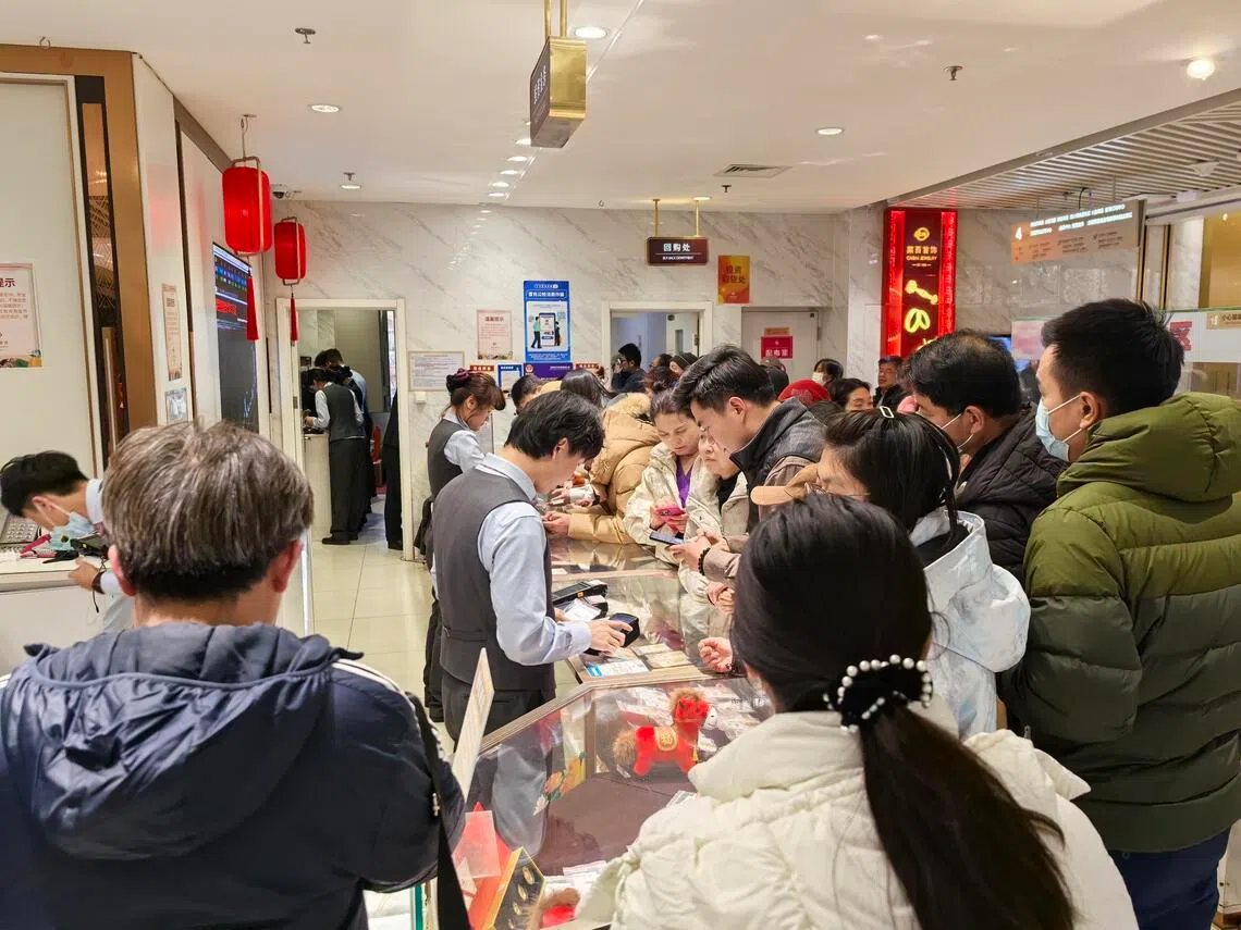 被视为中国黄金消费热度风向标的北京菜百首饰商场,星期一(2月2日)涌入不少前来抄底的中国投资者。《联合早报》记者当天中午抵达商场四楼的投资金条柜台时,排队购金的人龙一度达上百人。